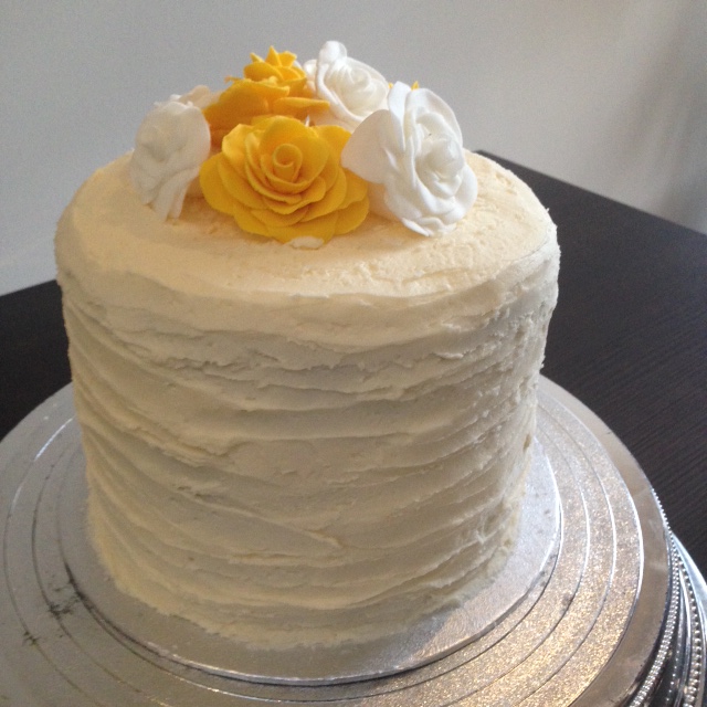 For the topping I was initially thinking of using real yellow roses and stacking them on top of the cake (yellow is a potential colour for the bridesmaids) instead I decided to make the roses out of icing. This is something which I have done previously but they didn’t turn out that great so I put in a lot of practice in the days running up to the party to ease the pressure. I used both yellow and white icing and the result was really good.